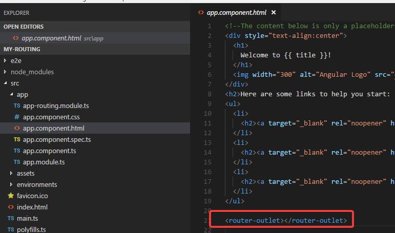 router-outlet已经写上了. 很好.