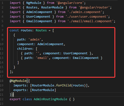 然后修改admin-routing.module.ts:
