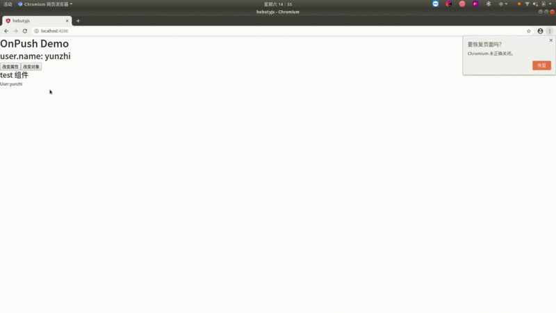 既然生命周期函数没调用,我们让他调用不就行了,值已经变化了,但是界面不变化,说明,angular 不知道值变化了,所以我们可以让angular 主动进行变更检测,让它知道已经发生了变化。