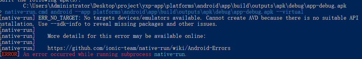 ionic cordova emulate android