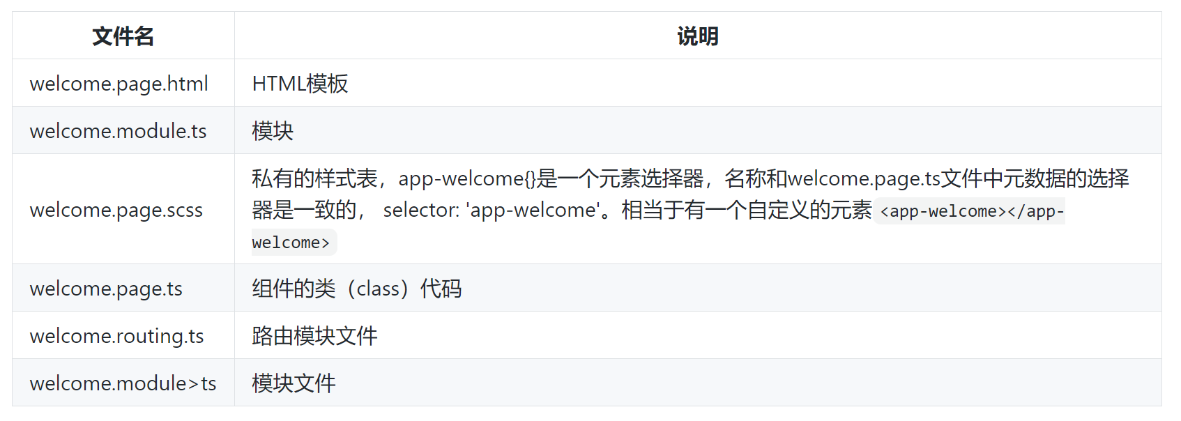 该命令会在src\app\welcome目录中自动生成以下几个文件: