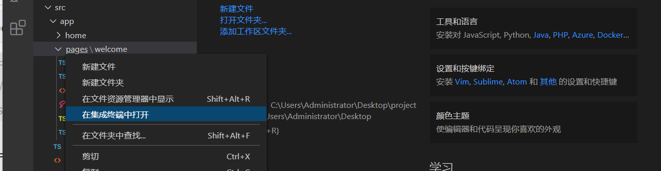 在工程目录下shirt+右键 ;powershell