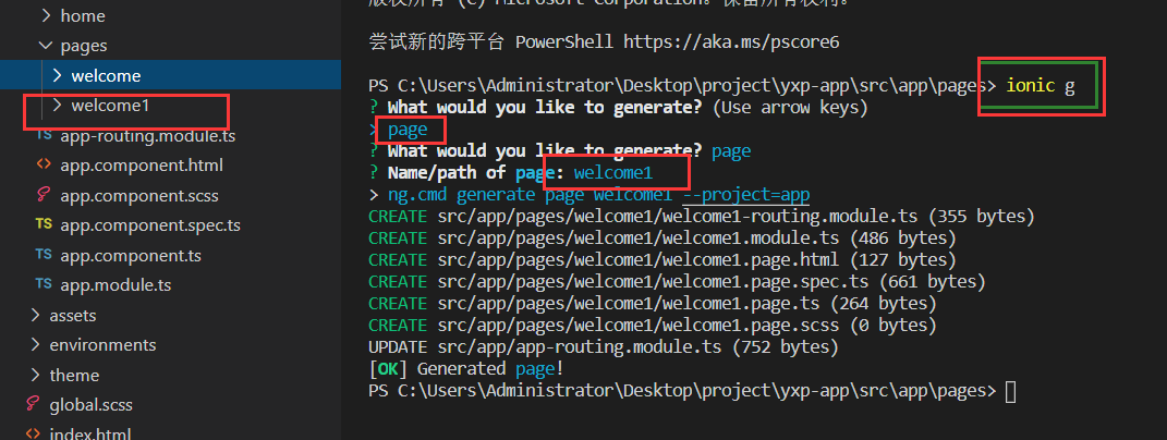 ionic generate page pages/welcome