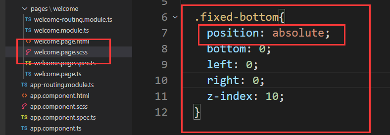 ① 添加.fixed-bottom样式。