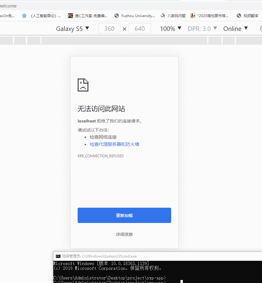 切换到浏览器,不需要按F5刷新,等待console提示编译完毕,浏览器上就能够显示新的界面。