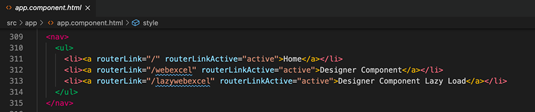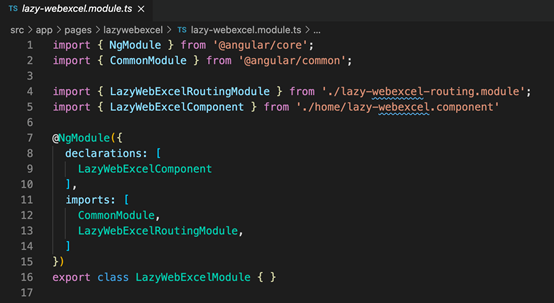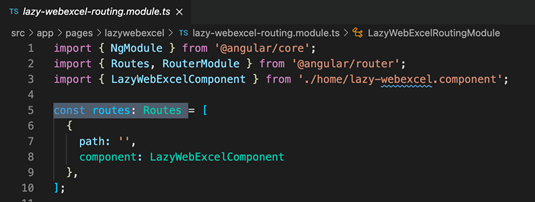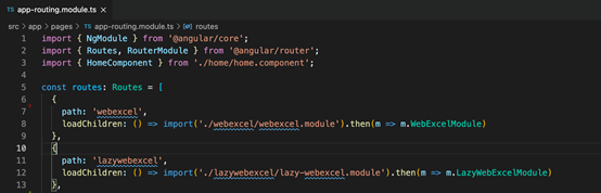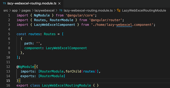 设置path为空,因为approutingmodule 中的路径已经设置了,lazywebexcelroutingmodule中的此路由已经位于lazywebexcel这个上下文中。另一个模块配置也类似,因此不再赘述。