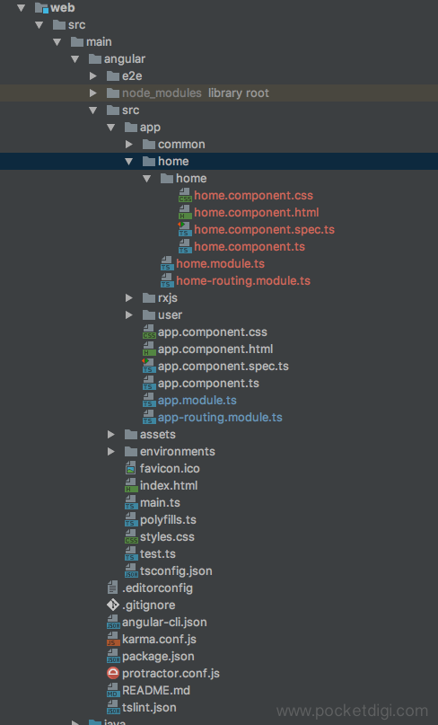 home模块放到src/app/home目录下,里面的home目录是home组件。