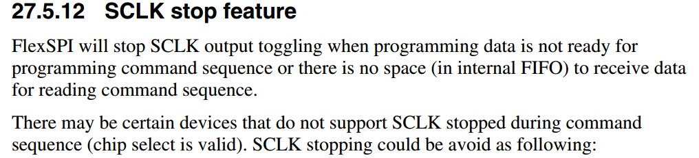 FlexSPI 的 SCLK 停止功能 手册1693页