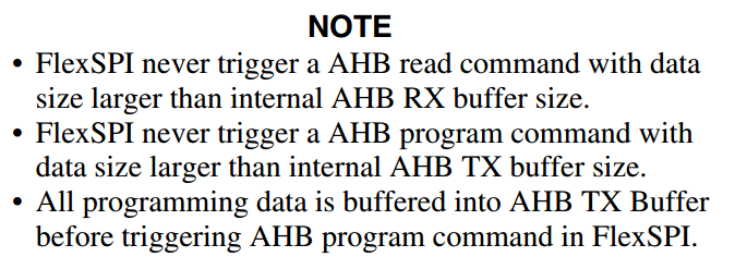 FlexSPI不会触发数据大于内部AHB TX缓冲区大小的AHB编程命令。
