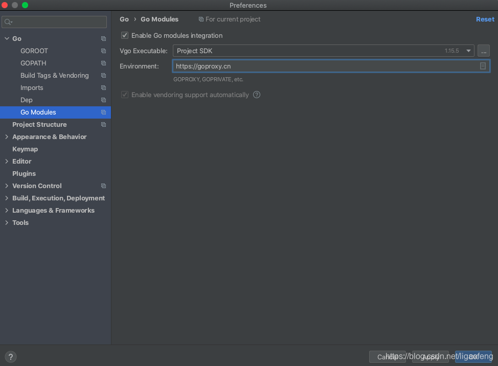 用goland打开刚才的iris项目发现不能识别iris,引入的iris部分提示红色,解决办法为:preferences->go modules