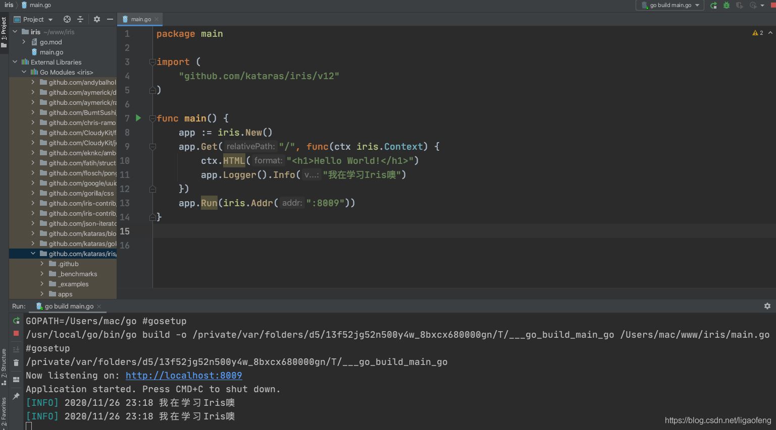 到此这篇关于mac下安装golang框架iris的方法的文章就介绍到这了,更多相关golang框架iris内容请搜索以前的文章或继续浏览下面的相关文章希望大家以后多多支持!