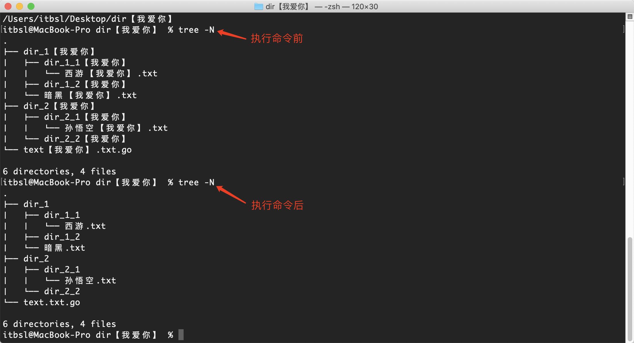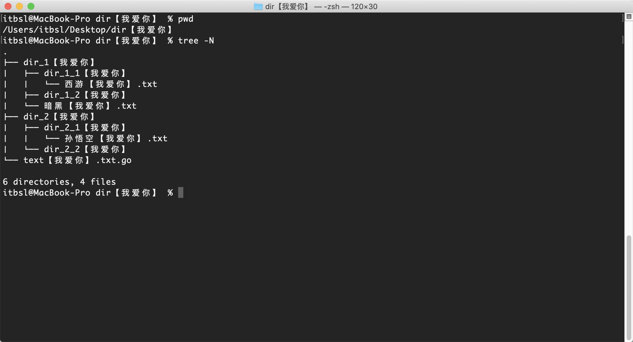 如下图,我的桌面有一个名为dir【我爱你】的目录,而且这个目录下的子目录和文件都包含【我爱你】,这个【我爱你】对于我们来说是完全无用的,我们可以用go的文件操作库来递归对文件进行重命名,把不需要的名字替换为空