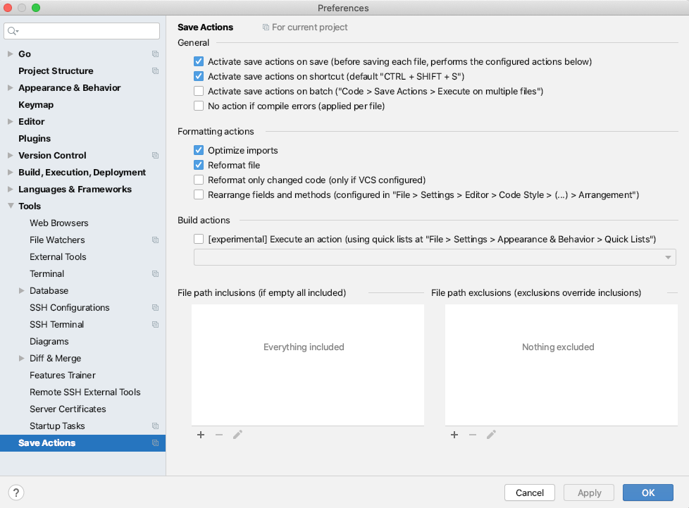 1.自动保存格式化。避免因代码未格式化提交到git历史里。preferences ->plugins搜索 save actions,然后设置自动保存格式化。