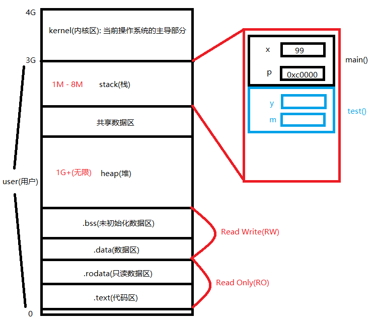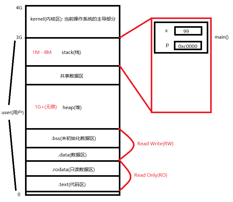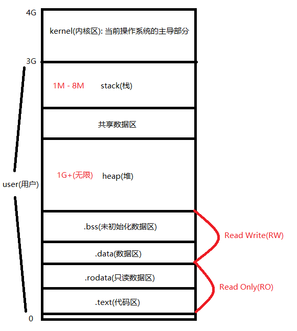 首先, 先来看一下内存布局图, 以 32位 为例.
