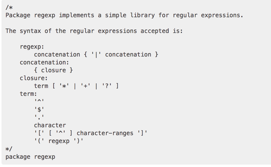 go支持块注释/**/和行注释//,行注释更常用,块注释主要用于包注释和大块代码禁用。godoc[2]支持从注释中提取文档,每个包和可导出的名称(大写)都应该提供注释。包注释对包整体进行介绍,并提供相关的信息,模版示例如图2.1: