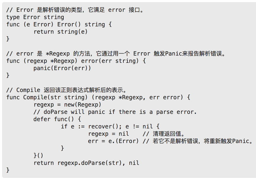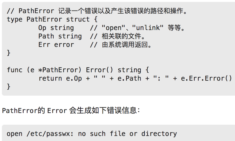 程序可以实现自己的错误类型,如图13.2,错误字符串应尽可能包含错误来源,比如包名前缀等。