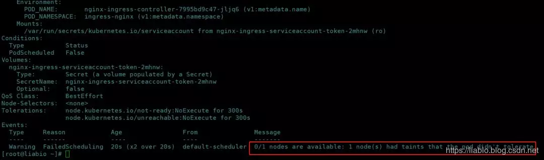 可以看到ingress-nginx pod被调度到master节点,且变为running