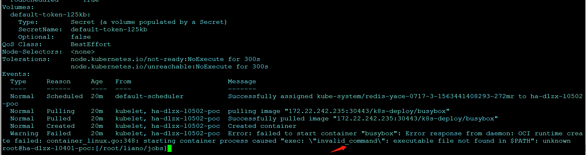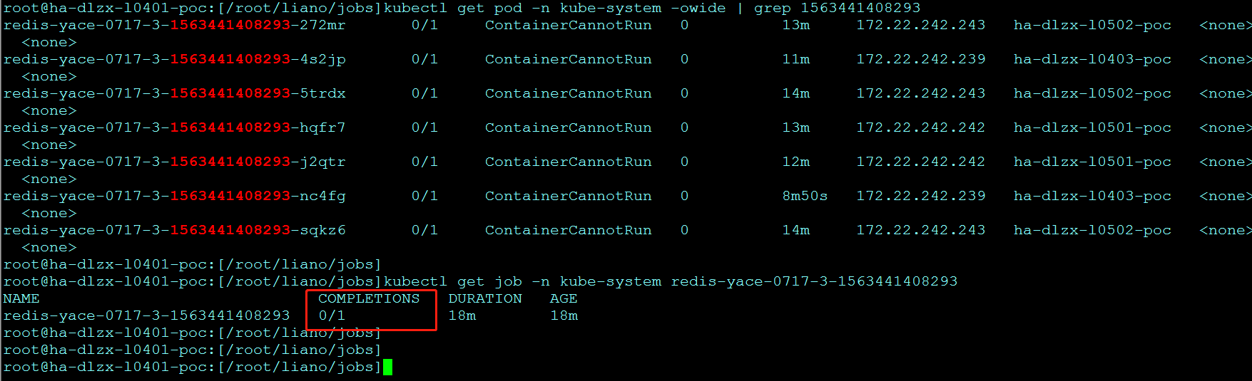 job 的 completions pod 数量还是为 0,看看 pod 的情况: