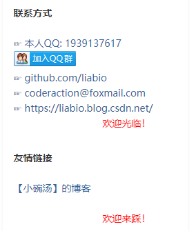 添加qq、qq群、邮箱、友情链接等: