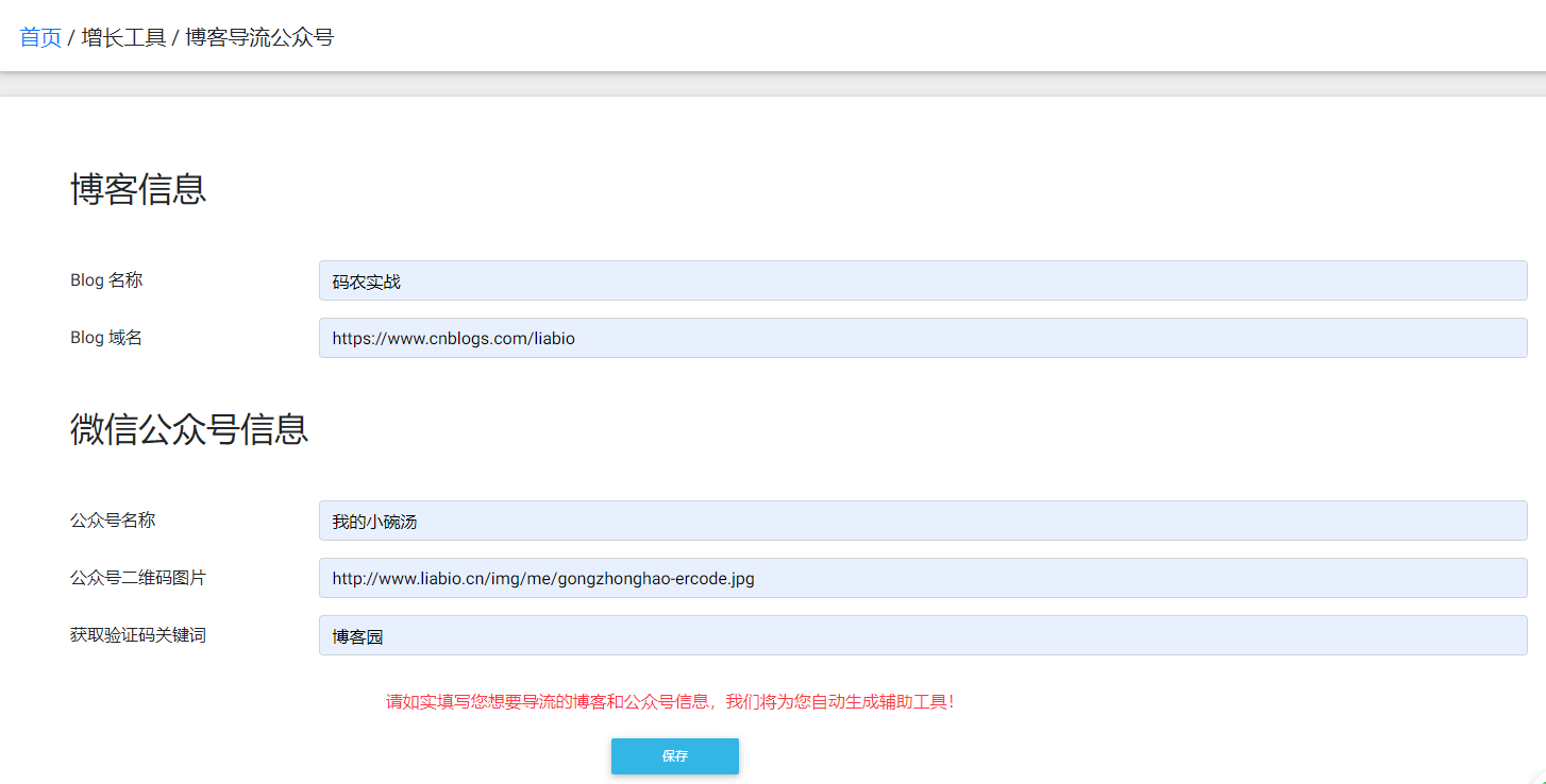 在 openwrite 后台,增长工具 / 博客导流公众号 目录下。点击添加按钮,填写博客和公众号信息,生成 readmore 脚本。