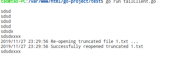 这段代码是参照慕课网的视频教程,主要是f.seek(0, os.seek_end)移动到末尾,但是里面有个小问题,当打开的文件被重新清空内容的清空下,就再也不能到读取数据了,比如在开启读取后 echo ''>1.log 这样就再也读不到了,tail包是解决了这个问题的