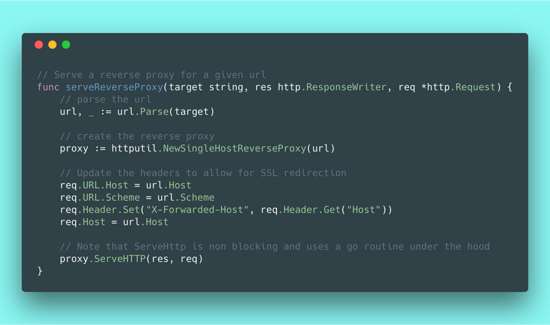 然而 go 的标准库使得创建一个反向代理非常简单以至于你都不敢相信。下面就是你所需要的最关键的一行代码: