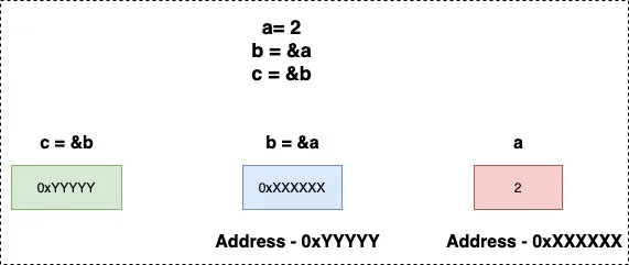 指针的地址为一个数值,此数值也可以被赋值给其他变量。因此,我们可以创建间接级别。这些间接级别有时会产生不必要的混淆,所以请谨慎使用。