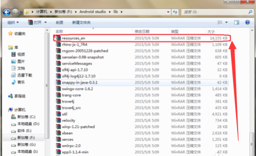 2、将C:\Program Files (x86)\Android Studio\lib目录下的resources_en.jar文件复制出来,并更名为resources_cn.jar
