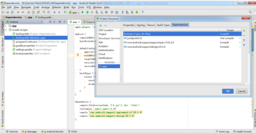 首先我们要了解什么叫做项目依赖,android studio使用gradle来管理项目,?gradle在构建项目时需要知道所需要构建或者运行的文件,以便gradle找到它们,我们将这些被导入的文件称作项目的依赖。对于这些由项目依赖导入的文件,gradle允许您告诉它您的项目都依赖了哪些文件以便gradle能够找到这些依赖文件,然后让这些文件在您的构建项目中可用。这些依赖文件可能需要从远程的maven或者ivy仓库下载,或者存在于本地目录中。