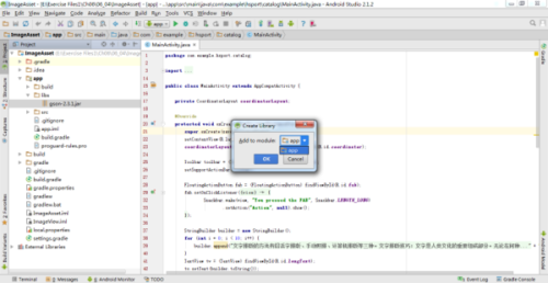 2、在弹出来的选框中选择gson支持库并确认后,android studio就会自动导入gson支持库了。