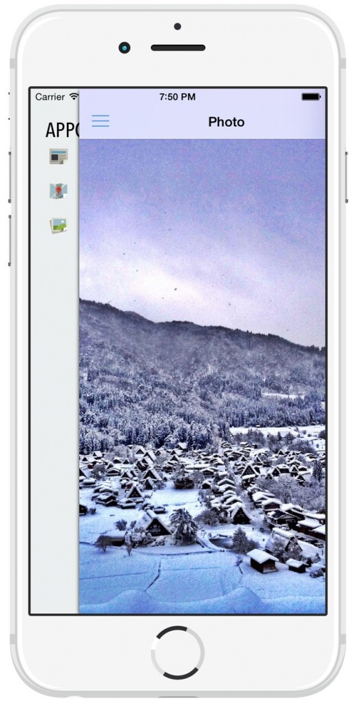 现在你既可以点击按钮来控制侧滑菜单,也可以滑动内容视图的区域来控制侧滑菜单了;跑起模拟器试一下吧。