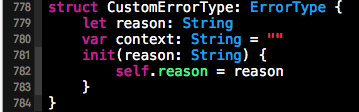 struct MyErrorType: ErrorType {