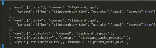菜单栏→preferences→browse?packages?打开sublime的插件目录,找到这个clipboard?history?这个文件夹?里面有个?default?(windows).sublime-keymap?文件,拖到sublime打开?里面定义了这些快捷键,按对应的快捷键就会出现clipboard了。希望能帮到你。
