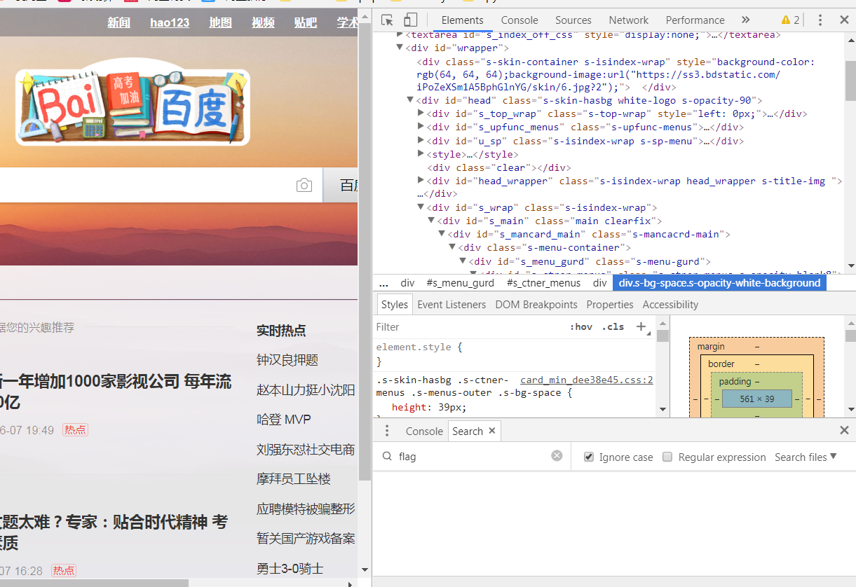 实际上这些代码又分成三个部分,第一部分就是有html组成的这个结构部分,有很多带标签的像div,section等都是由html语言写成的,例如我们看到一个标签后面跟着一个class,实际上这个是标签对应的样式,也就是在最右侧这一栏,就是样式,每次加载网页都会有这两个,信息,一个是html一个css样式,然后在源码的最低侧,还有一个script标签,这个里面加载的是javascript代码,这三者,就是html,css,javascript就构成了一个绝大多数网页的结构,接下来我们就举一个例子。