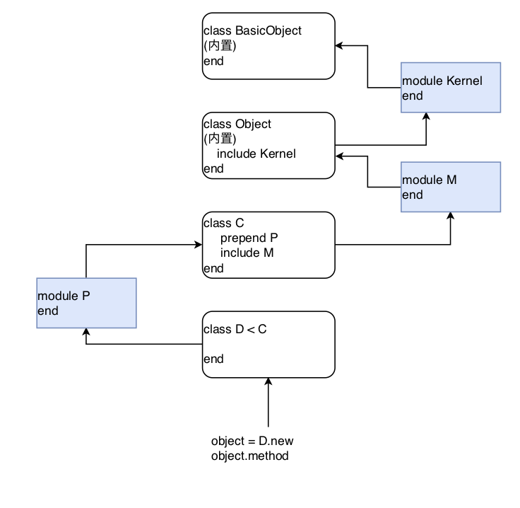 3.查找父类中是否有该方法,父类中是否有module,如果有prepend模块,则先调用,没有的话如果有在类中定义,则调用;