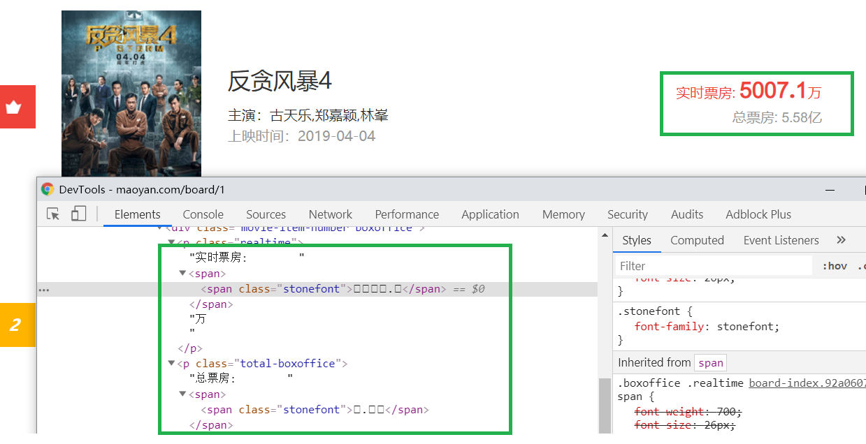 可以看出又是字体反爬,需要获得字体文件,定位字体文件的url,在页面或css里搜@font-face或font-famil