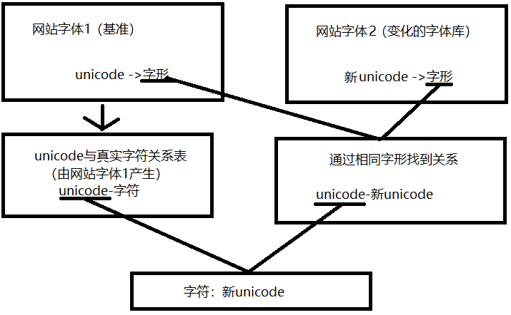 1.下载一个网站字体做为基准,建立基准字体unicode和真实字符关系。
