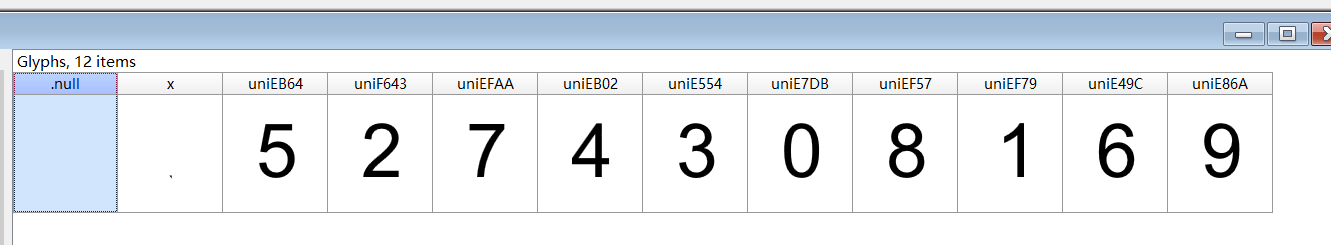 建立基准字体的unicode和真实字符的关系,看字体可以用fontcreator