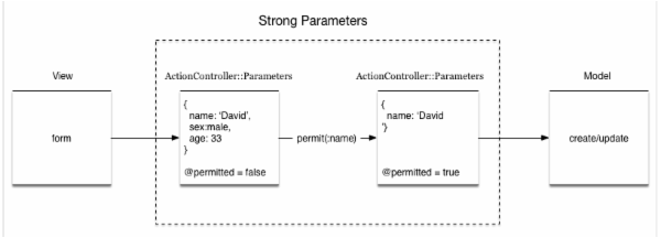 未经 strong parameter 过滤的 actioncontroller::parameters 对象的 @permitted 为 false(过滤后为 true)。如果硬传给 model,会报错 activemodel::forbiddenattributeserror 。