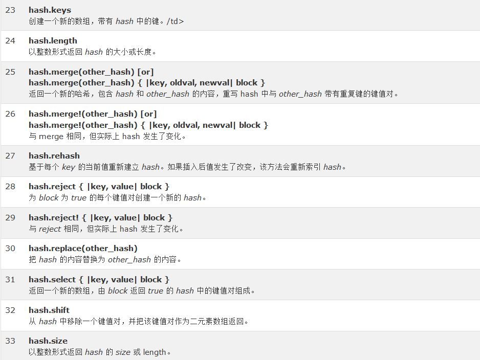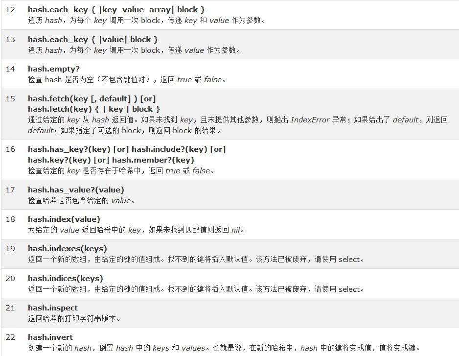 下面是公共的哈希方法(假设 hash 是一个 hash 对象):