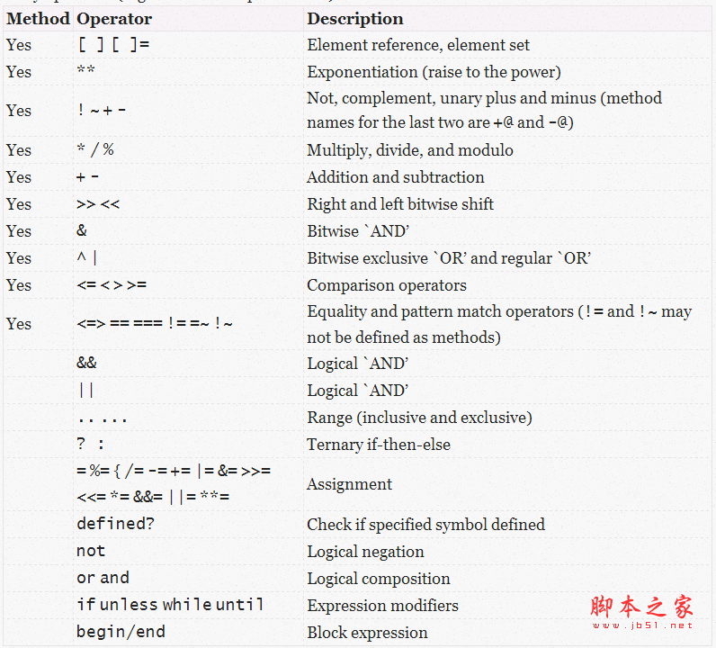 Ruby的运算符和语句优先级介绍