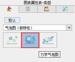 选中图表,在右侧图表属性表中选择图表属性表-类型,选择力学气泡图: