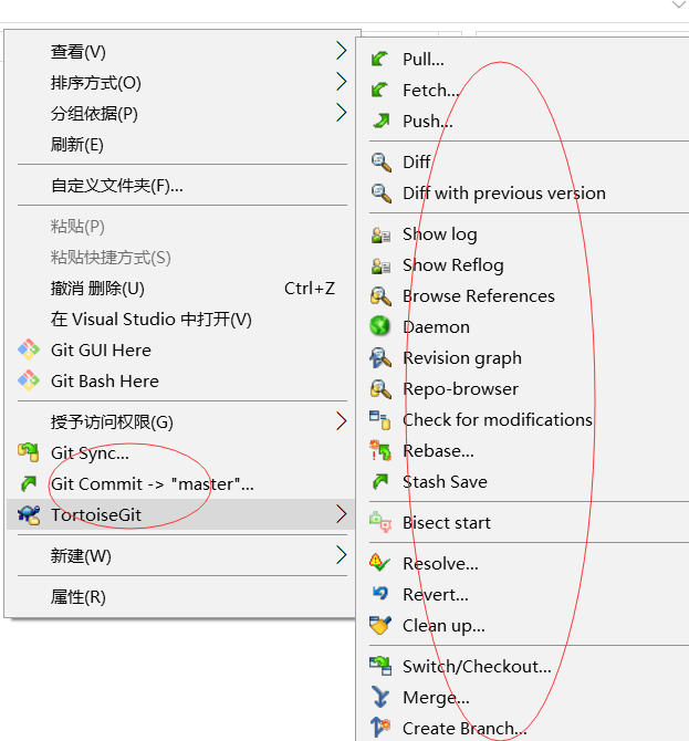 点击这里 ,下载并安装TortoiseGit图形化工具,安装后可以通过鼠标进行Git命令的操作。如下所示: