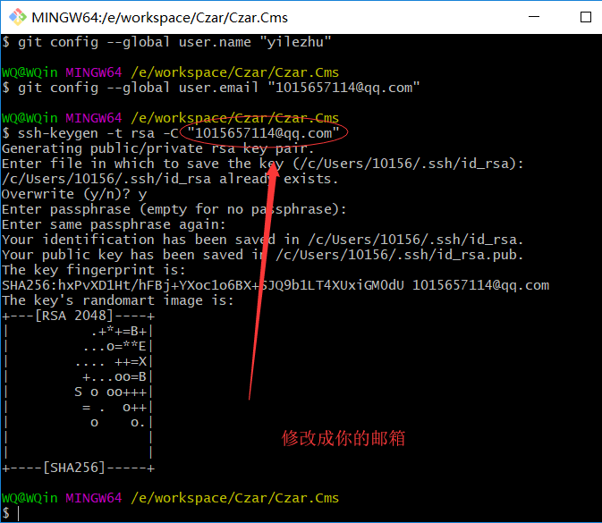 $ git config --global user.name "yilezhu" $ git config --global user.email 1015657114@qq.com