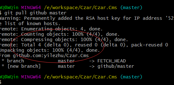 - git pull github master :从github命名的远程仓库拉取master分支内容