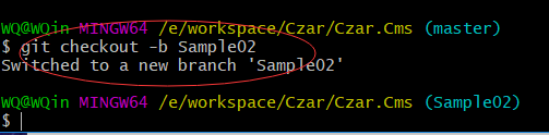 - git checkout -b Sample02 :创建并切换到Sample02这个分支上