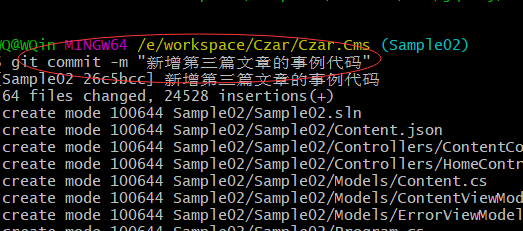 1.在我们的本地仓库文件夹打开git bash 然后输入git checkout -b Sample02 命令创建并切换到Sample02 这个分支,然后把我们上篇文章的代码拷贝到这个文件夹,如下图所示