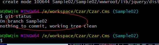 5.然后输入git status 查看一下,发现所有的修改都已经提交成功了。