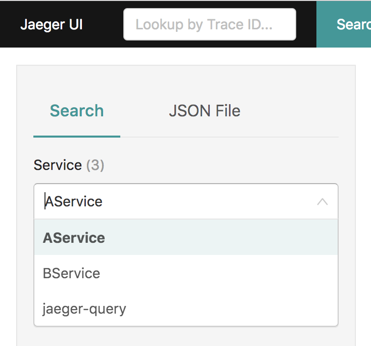 然后去Jaeger的界面上我们可以看到,两个服务已经注册上来了。