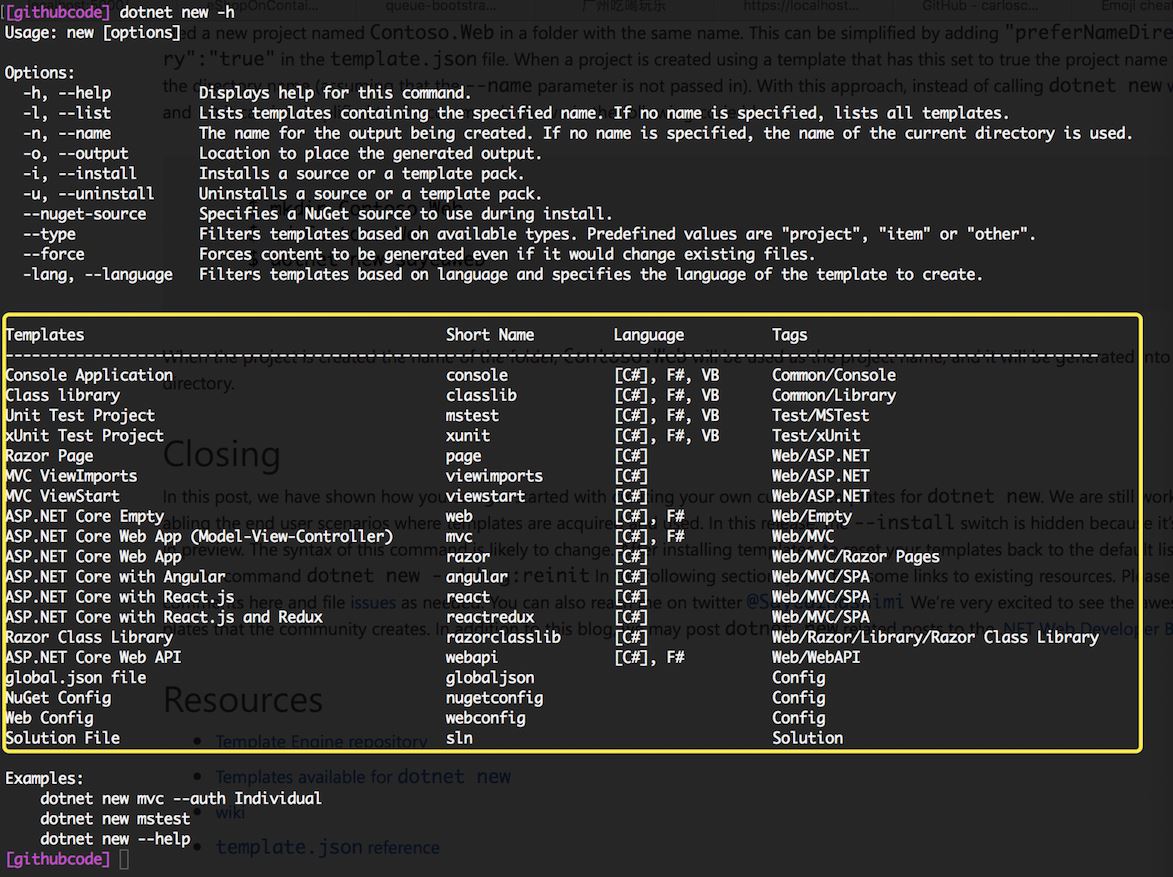 使用 dotnet new -i进行模板的安装。